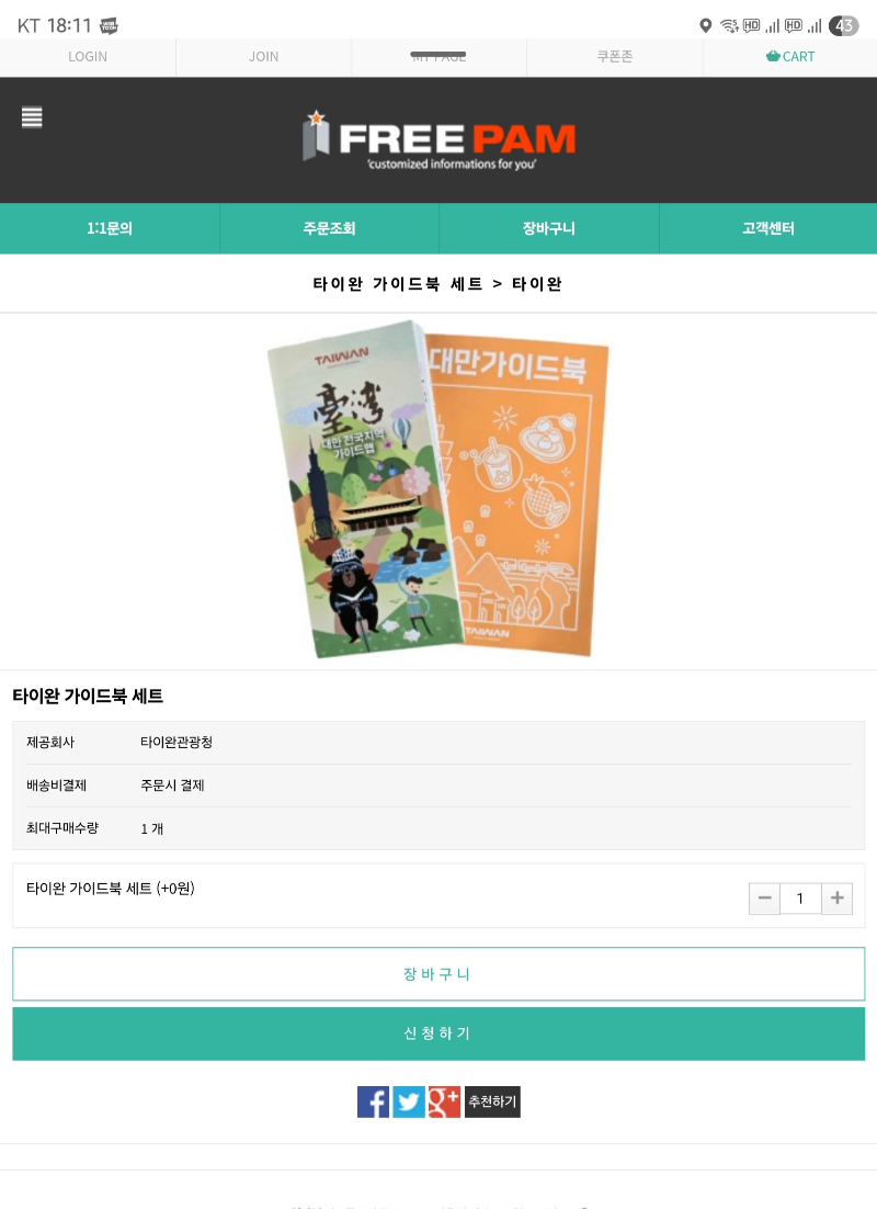 대만관광청에서 가이드북을 누르면 위탁 업체의 링크로 연결 되는데 거기서 신청을 누르면 된다.