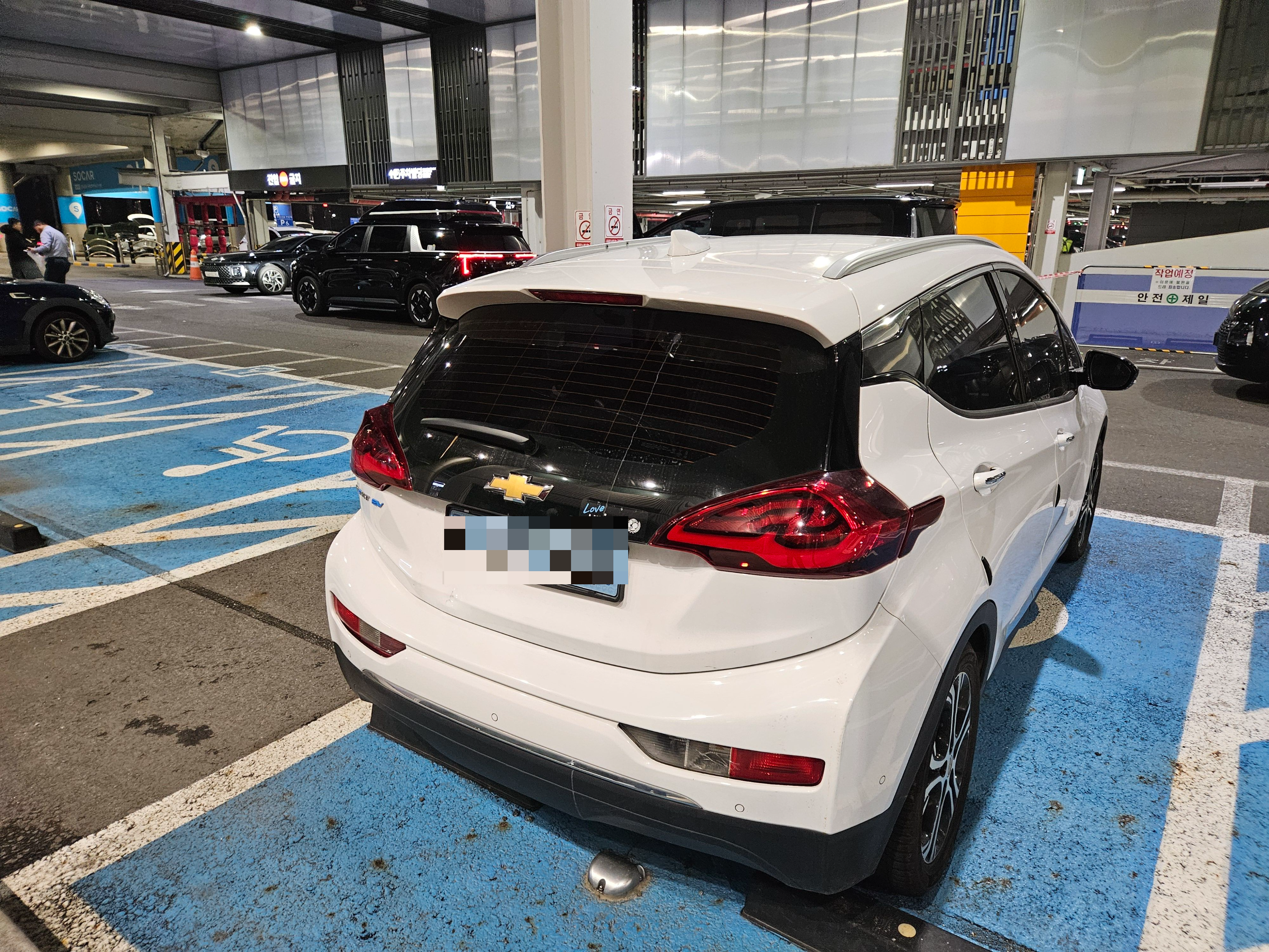 주차빌딩은 다 좋은데 장애인 주차구역은 지붕이 없어서 비를 맞는 자리였다. ㅡ.,ㅡ;