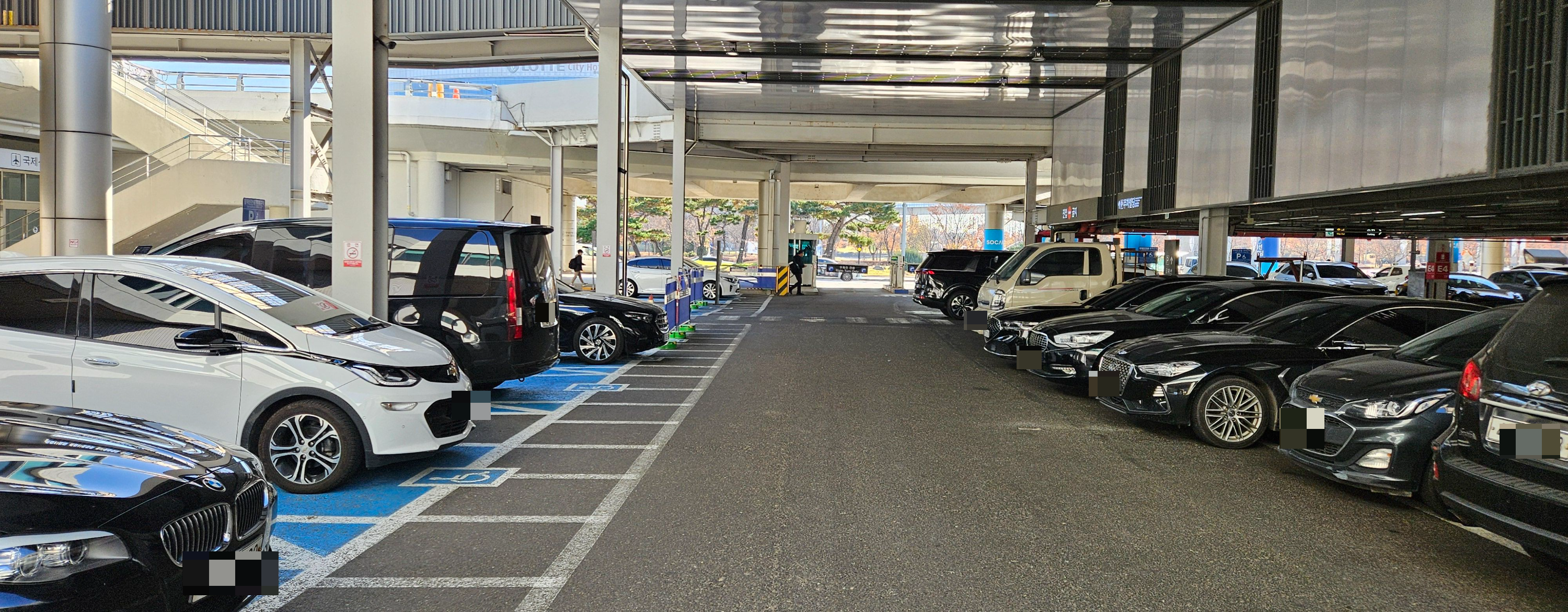 아버지가 국가유공자인 데다가 보훈등급이 있어서 장애인 주차를 할 수 있는데 김포공항 국제선 타워주차장 장애인 주차구역은 청사 바로 옆 출구 쪽에 있다.