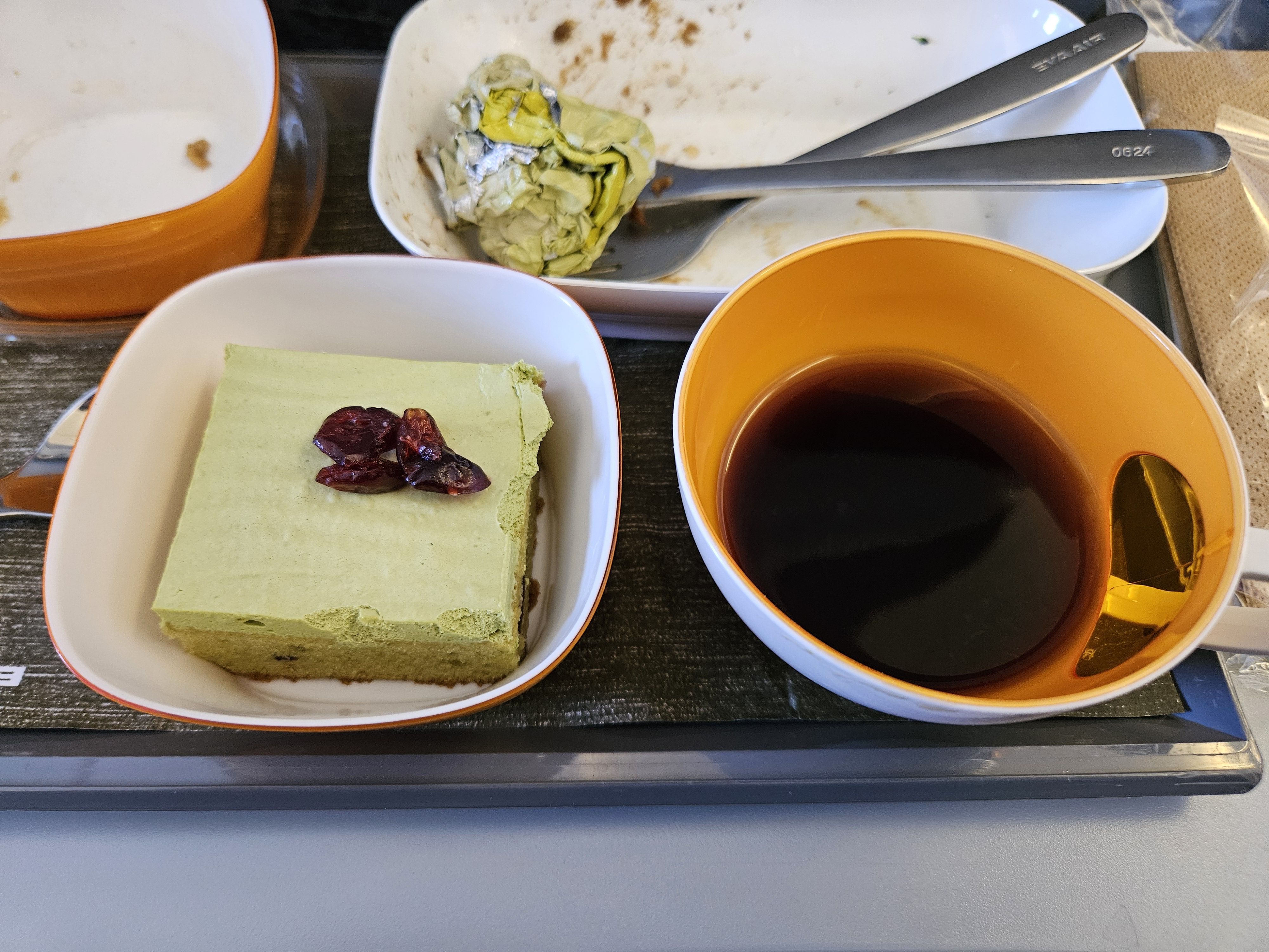 식사 중에 커피와 차가 역시 제공되었는데 다른 사람들은 맥주나 하이볼도 마셨다는데 그건 따로 요청을 해야 챙겨 마실 수 있나 보다. 돌아와서는 운전을 해야 해서 요청도 못했지만... ㅠㅠ