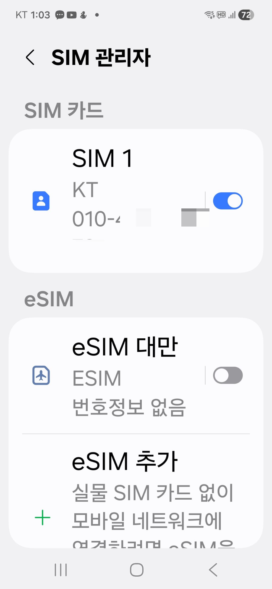 물론 등록된 이심의 대만 현지 번호는 내 휴대폰의 설정에서 쉽게 확인이 가능하다.