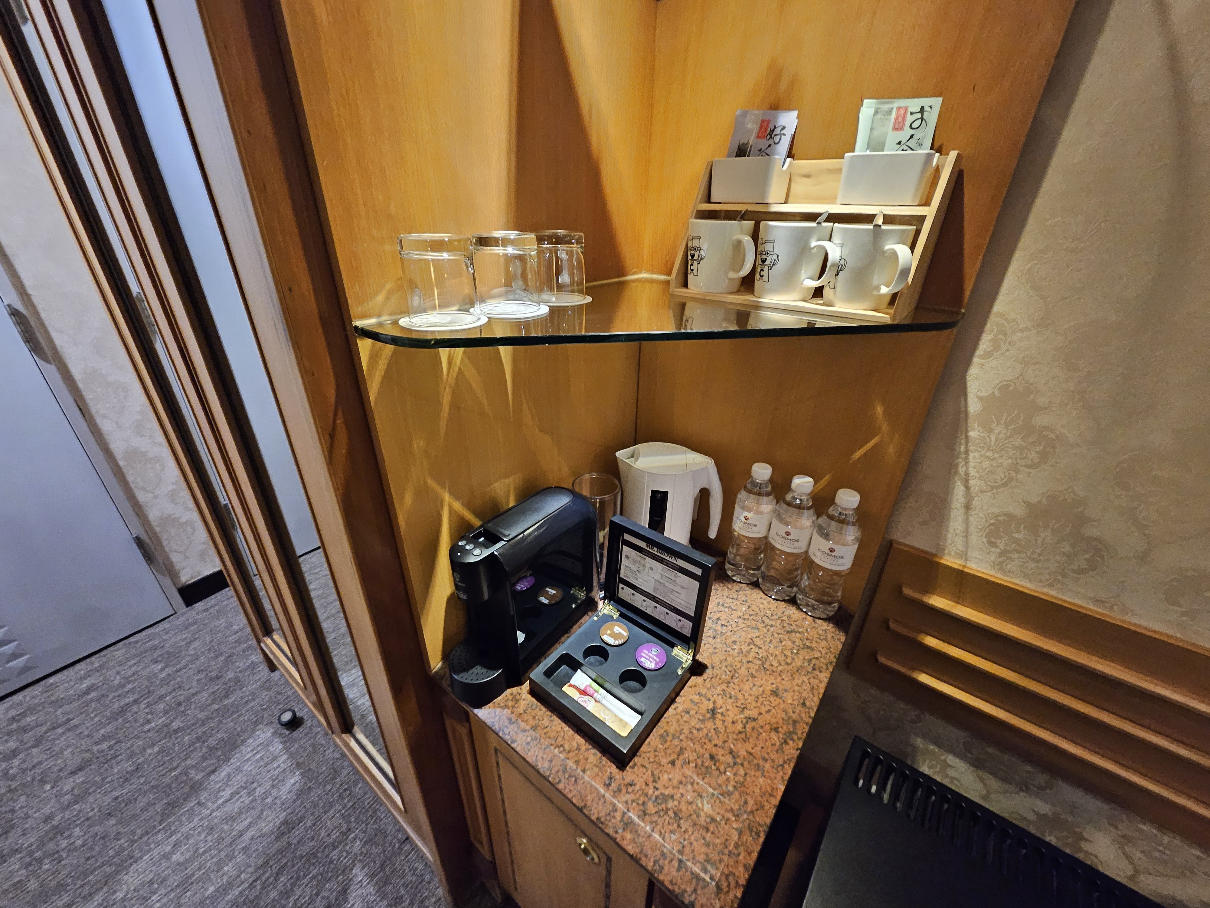 대만의 대표 커피 브랜드인 미스터 브라운 커피의 캡슐 커피가 제공되는데 캡슐 커피머신에 익숙하지 않더라도 설명서가 있으니 어렵지 않게 뒤에 물통에 물을 채운 후 이용을 할 수 있다.
