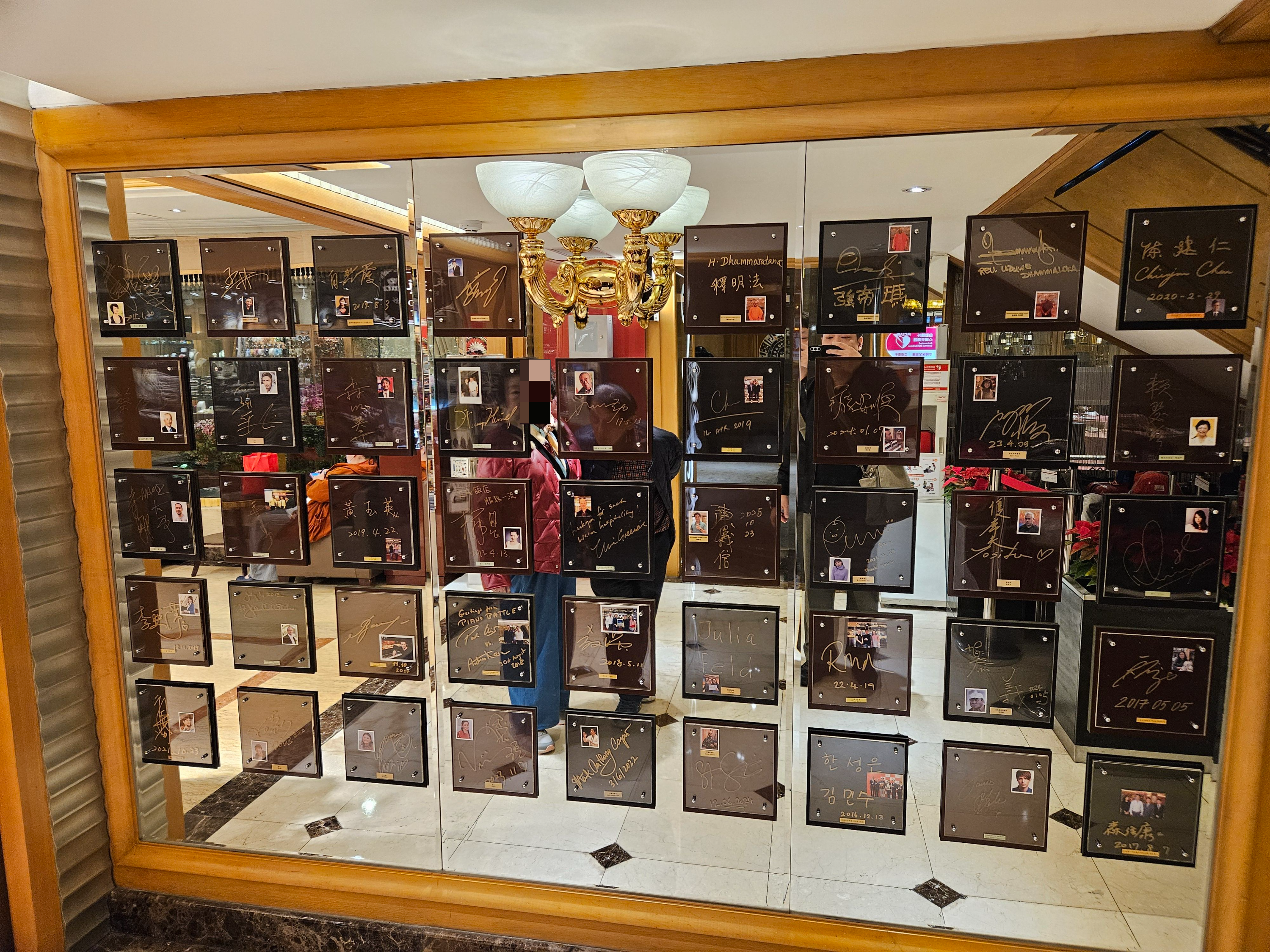 1층 로비에 보면 코스모스 호텔을 이용한 유명인들의 사인 명판이 진열되어 있다.