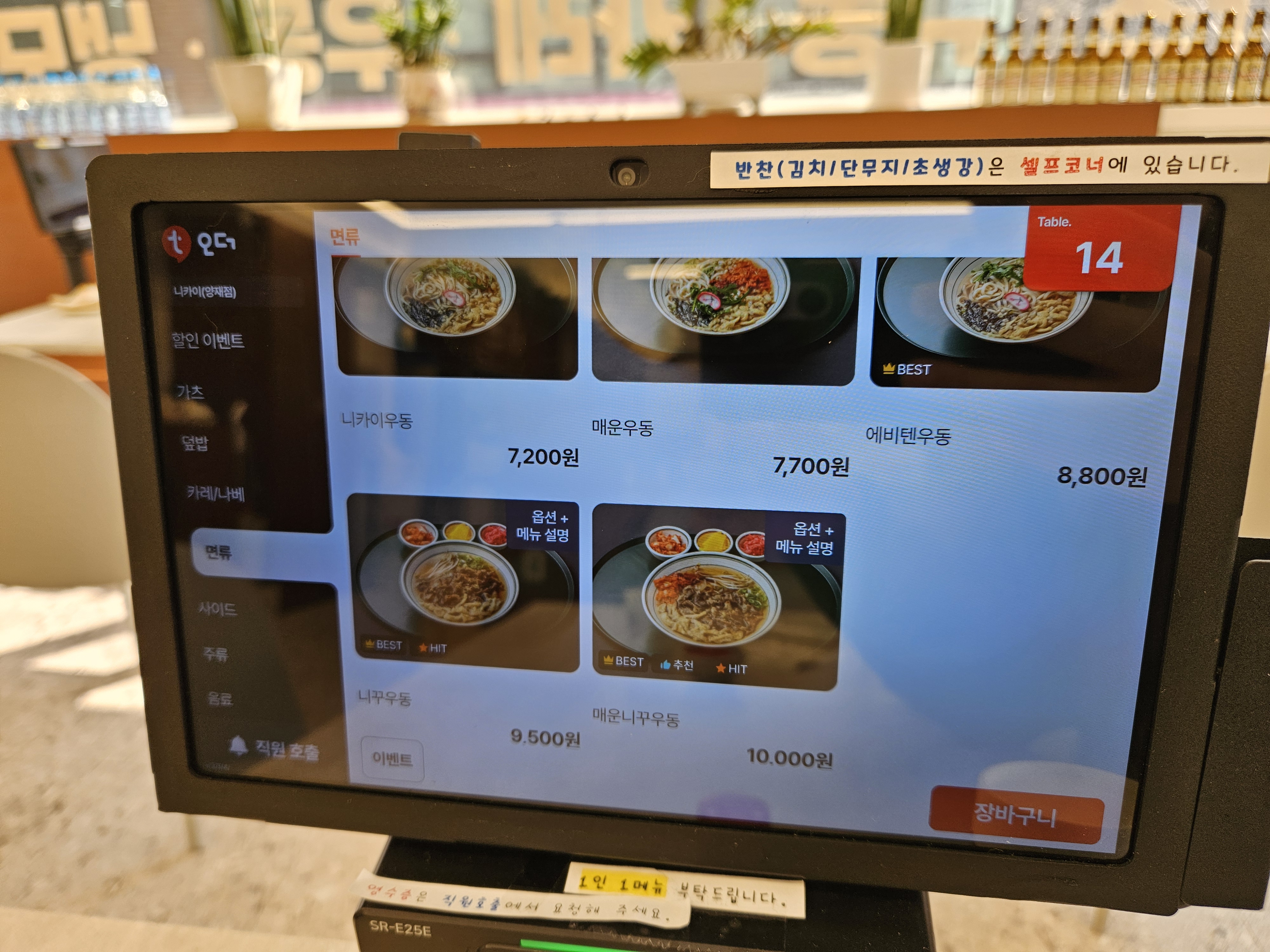 주문은 각 테이블 마다 설치된 테이블 오더로 주문과 결제를 하면 된다.