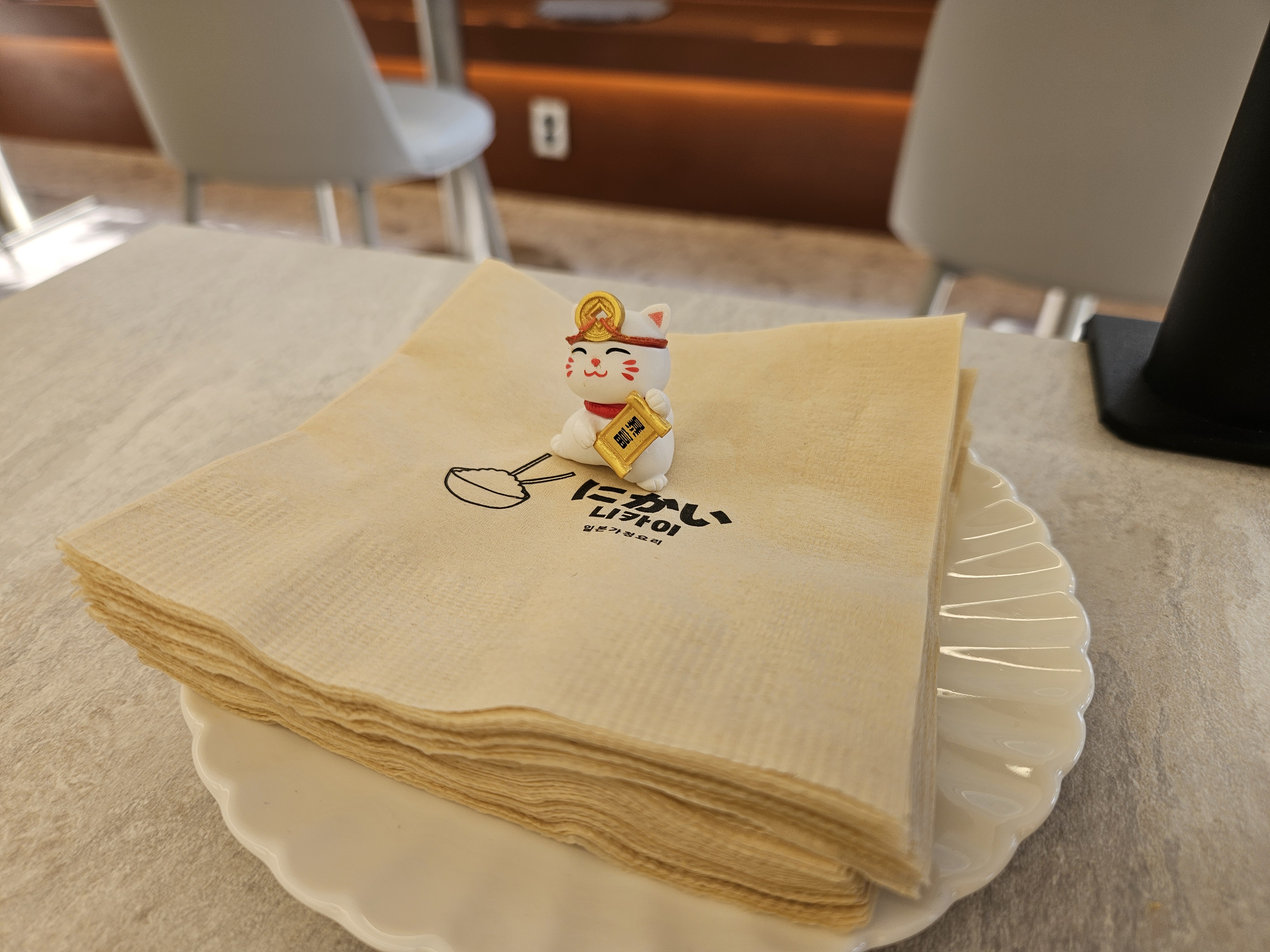 일본풍의 인테리어를 느낄 수 없어서 아쉬웠던 부분은 이렇게 냅킨을 고정하는 미니 마네키네코가 조금은 채워주고 있다. ^^;
